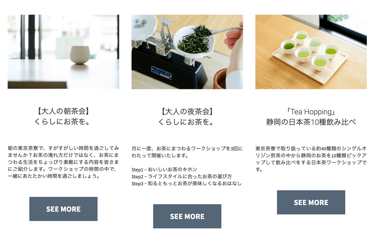 時期によって様々なコンテンツをご用意しております。どのワークショップも、お茶のことがわからなくてもご安心ください。当店のバリスタや日本茶インストラクターによる、楽しくわかりやすいワークショッププログラムを心がけております。